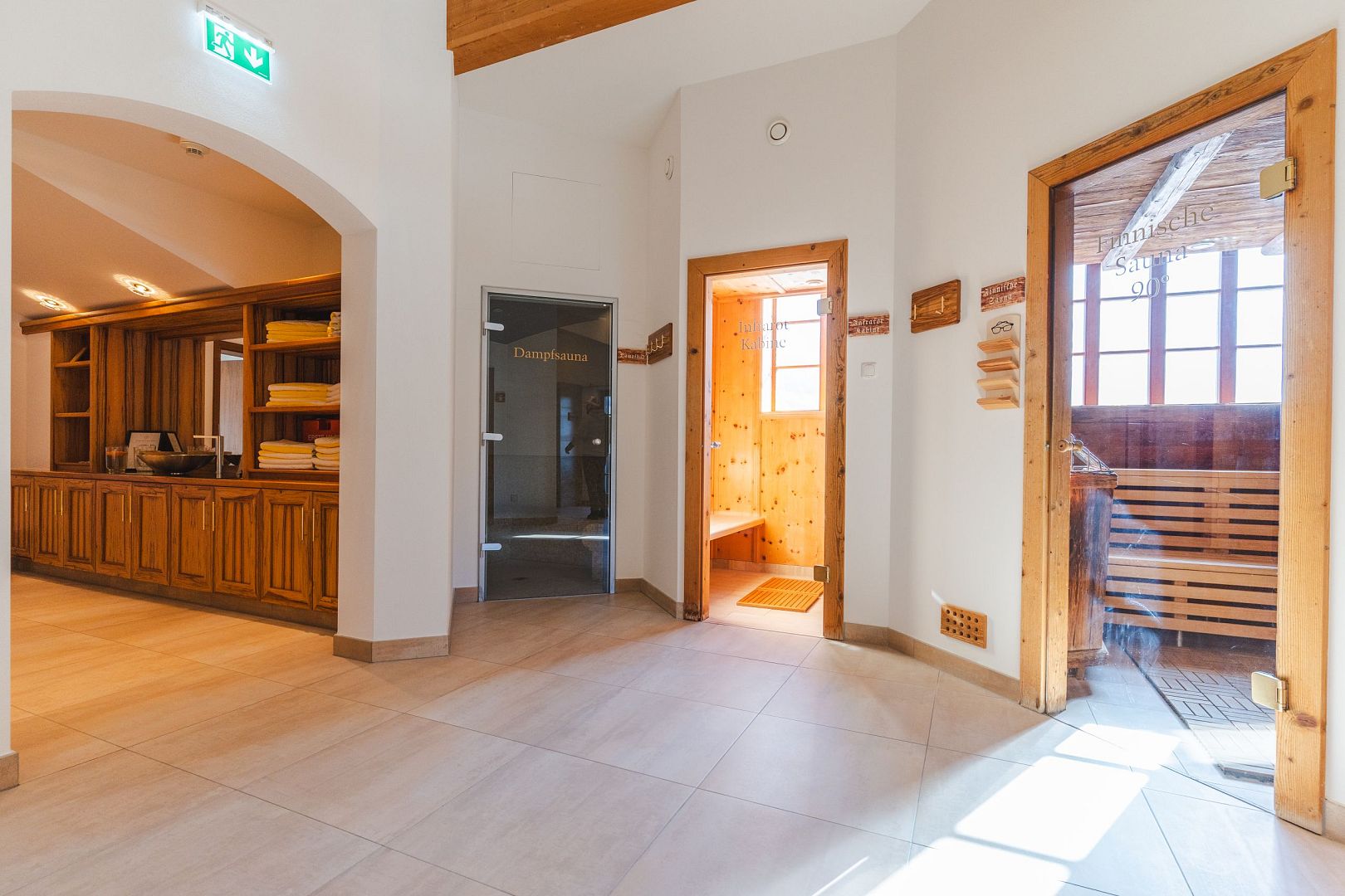 Der großzügige hauseigene Wellnessbereich mit Blick auf das Kaisergebirge lädt zum Regenerieren und Kräfte tanken ein. Erleben Sie Wellnessgenuss in altbewährter Tiroler Manier und laden Sie ihre Reserven mit Massagen oder einem Wellnessprogramm im Kaiserwinkl auf.